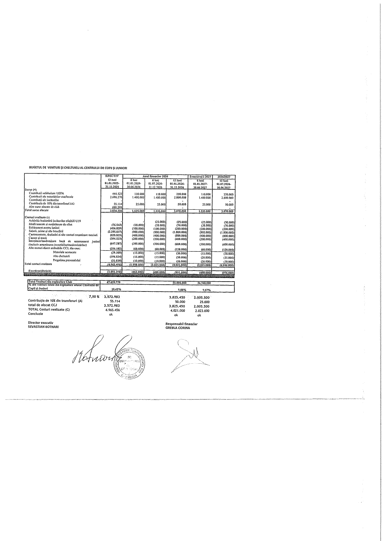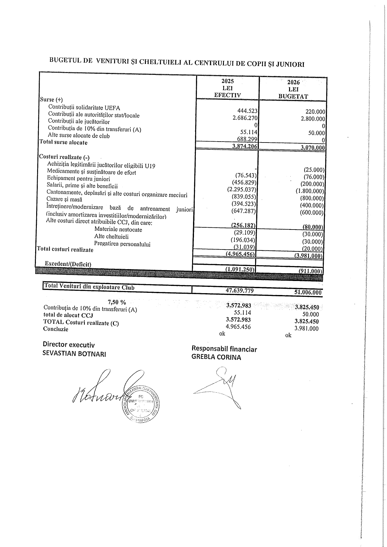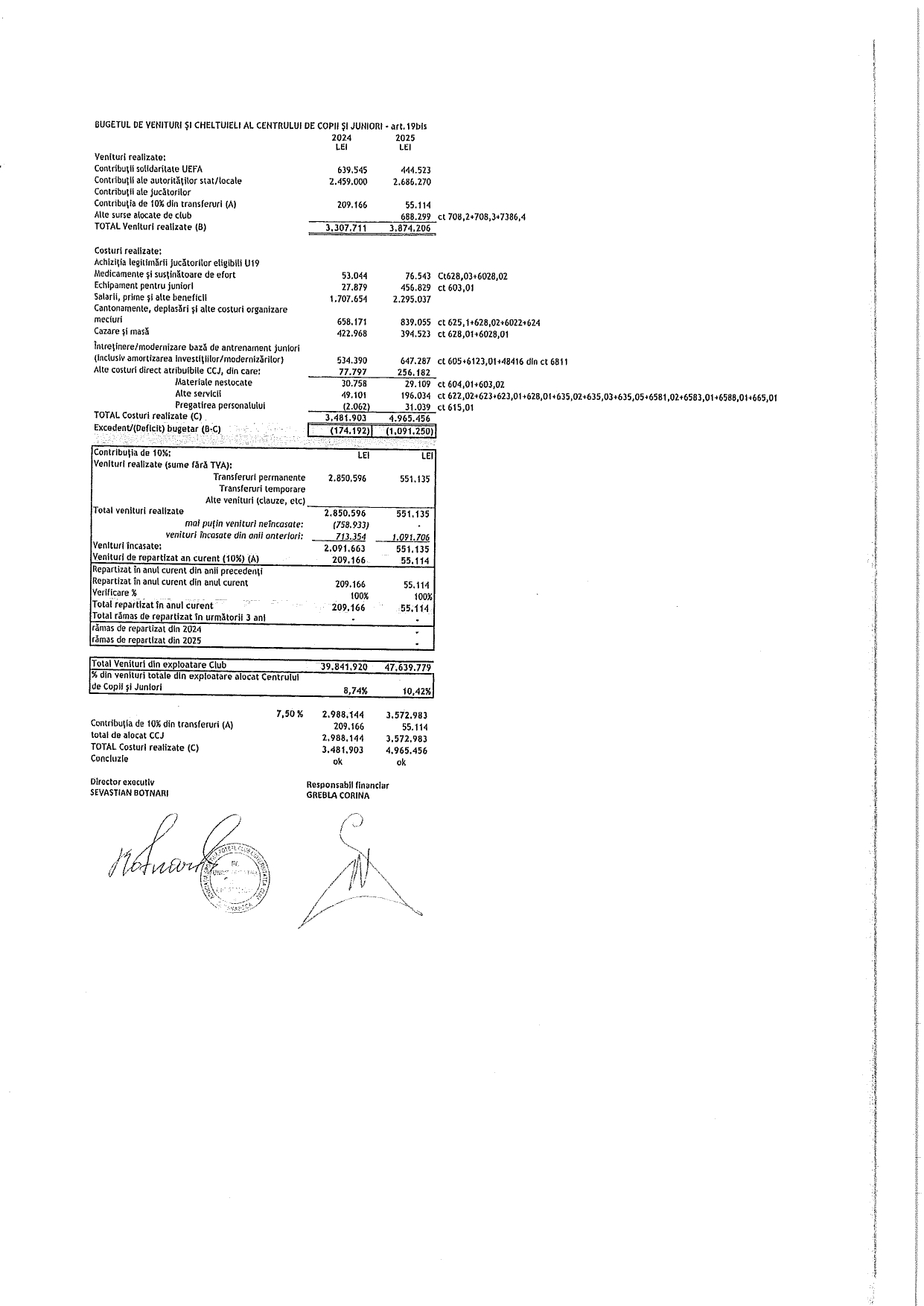 Bugetul de venituri si cheltuieli al centrului de copii si juniori